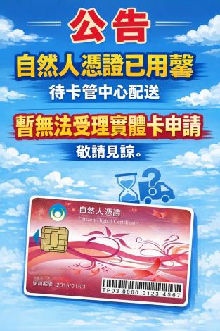 【公告】本所自然人憑證空白卡片已用罄,造成不便請見諒!